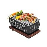 - HERMOSO Y PRÁCTICO: Este barbacoa japonesa de estilo crea una atmósfera de asado al estilo japonés que hace que todo el proceso de asado sea más agradable. La base de madera maciza de la parrilla evita el contacto directo con la mesa del mueble y protege la mesa del comedor de daños. Como se trata de una estufa de carbón, se invita a los niños a asar a la parrilla con sus padres para evitar quemaduras accidentales.