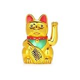 Avilia Gato Chino de la Suerte a Pilas – Gato japonés Maneki-Neko para casa y Restaurante, de ABS, 20 x 15 cm, Dorado