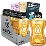 - 【 CON PEPITAS SALUDABLES CIA&CO: 】 Este pack de 24 sobres Bolero sabor PIÑA te permite preparar más de 36 litros de agua o bebida hidratante sin azúcar. Incluye acceso a 30 pepitas saludables Cia&Co, con consejos sobre hidratación, nutrición, motivación y una forma deliciosa de beber más agua y enriquecer tu vida con hábitos saludables.