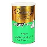 Khanum - Mantequilla pura Ghee 1000 g – Grasa de mantequilla de alta calidad para freír, cocinar y hornear, perfecta para freír, alto punto de humo, sin aditivos, con adhesivo Kajal
