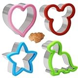 - Forma: este juego de cortadores de galletas para sándwich incluye 4 estilos, formas de Mickey, Dinosaurio, corazón, estrella para cortar alimentos en formas lindas, a tus hijos les encantará.