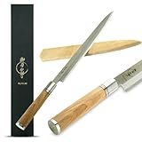 - Versatilidad y precisión: perfecto tanto para chefs profesionales como para cocineros caseros, este cuchillo es ideal para una amplia gama de tareas culinarias, desde filetear salmón hasta preparar sushi y sashimi con precisión y facilidad.